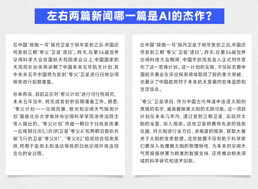 技术人员以文稿为例解释,这是因为“AIGC文本内容在宏观上流畅自然,但还是存在一些微观特征与人类写作不同。例如,生成模型在预测下一个词时,有其内在的概率分布偏好,更倾向于选择最安全、最高频的词汇组合,而人类写作可能会使用一些不常见但地道的表达。又比如,人类创作通常表现出更多的爆发性,即偶尔会使用一些意想不到的词汇,而AIGC文本内容缺少这种突变性。总的来说,可以借助AI来捕捉人类数据与AI生成内容的特征差异,鉴别AIGC文本内容。”