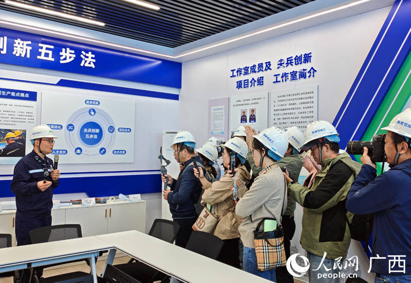 从一线成长起来的他,将炽热车间当作价值实现的战场,用行动诠释新时代工匠精神——既追求技艺登峰造极,更坚守责任与智慧的代际传承。工作室墙上43张照片,记录着他培育的高技能人才梯队,徒弟雷翊君已成长为“广西工匠”。他定制系统化培训方案,开设“车间课堂”“微讲座”,从基础操作到工艺优化手把手教学;坚持启发式指导,引导团队在实践中锤炼解决复杂问题的能力。由他牵头制定的《铝及铝合金熔铸工技能等级认证标准》,更成为行业技能人才的“成长阶梯”。截至2025年6月,他已培养出南宁市特聘首席技师2名,特技技师2名、高级技师、技师52名,高级工186名。