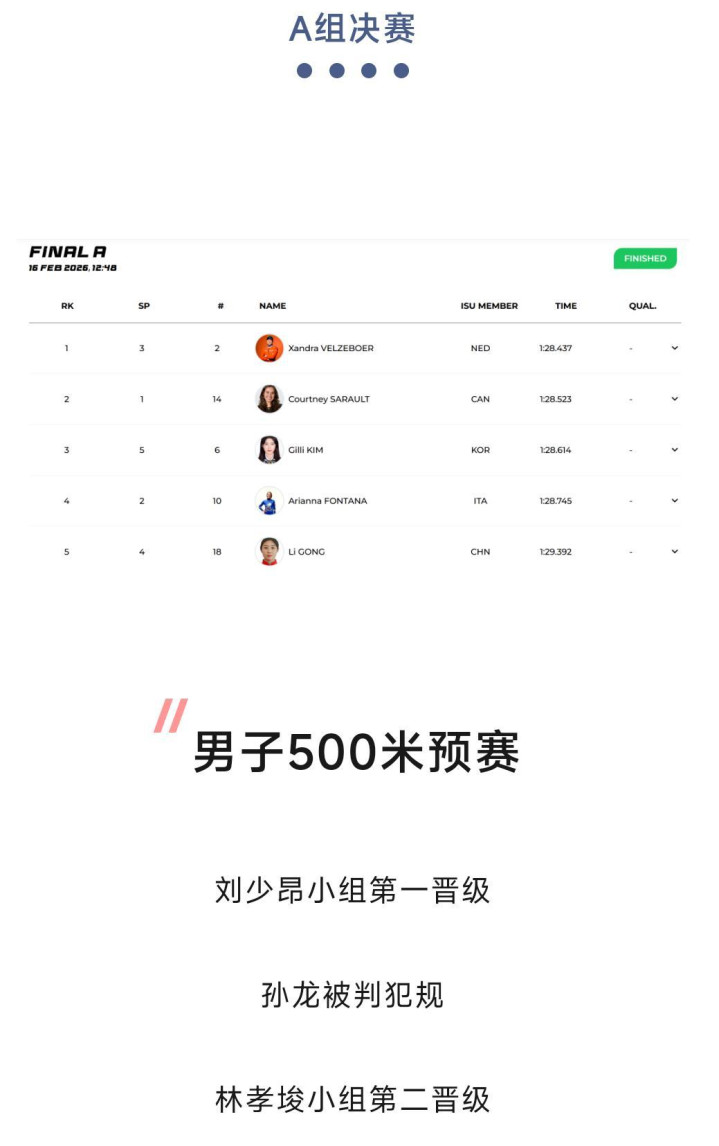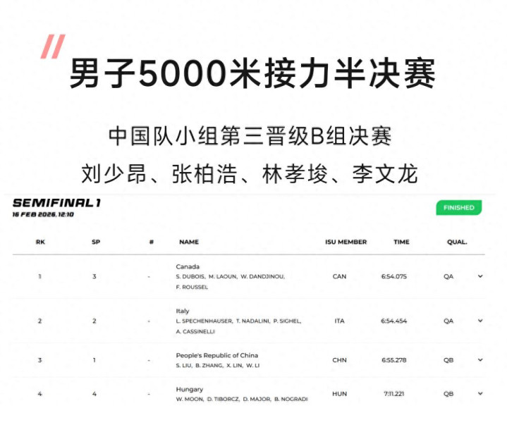 星星配资 公俐第五 男子接力未晋级A组决赛|米兰冬奥会短道速滑2月16日赛况